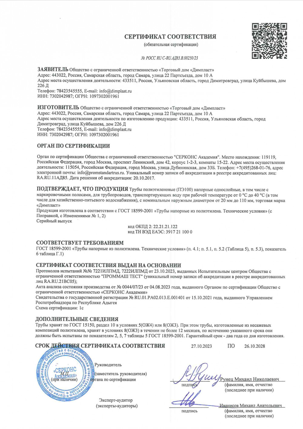 Сертификат соответствия ГОСТ 18599-2001