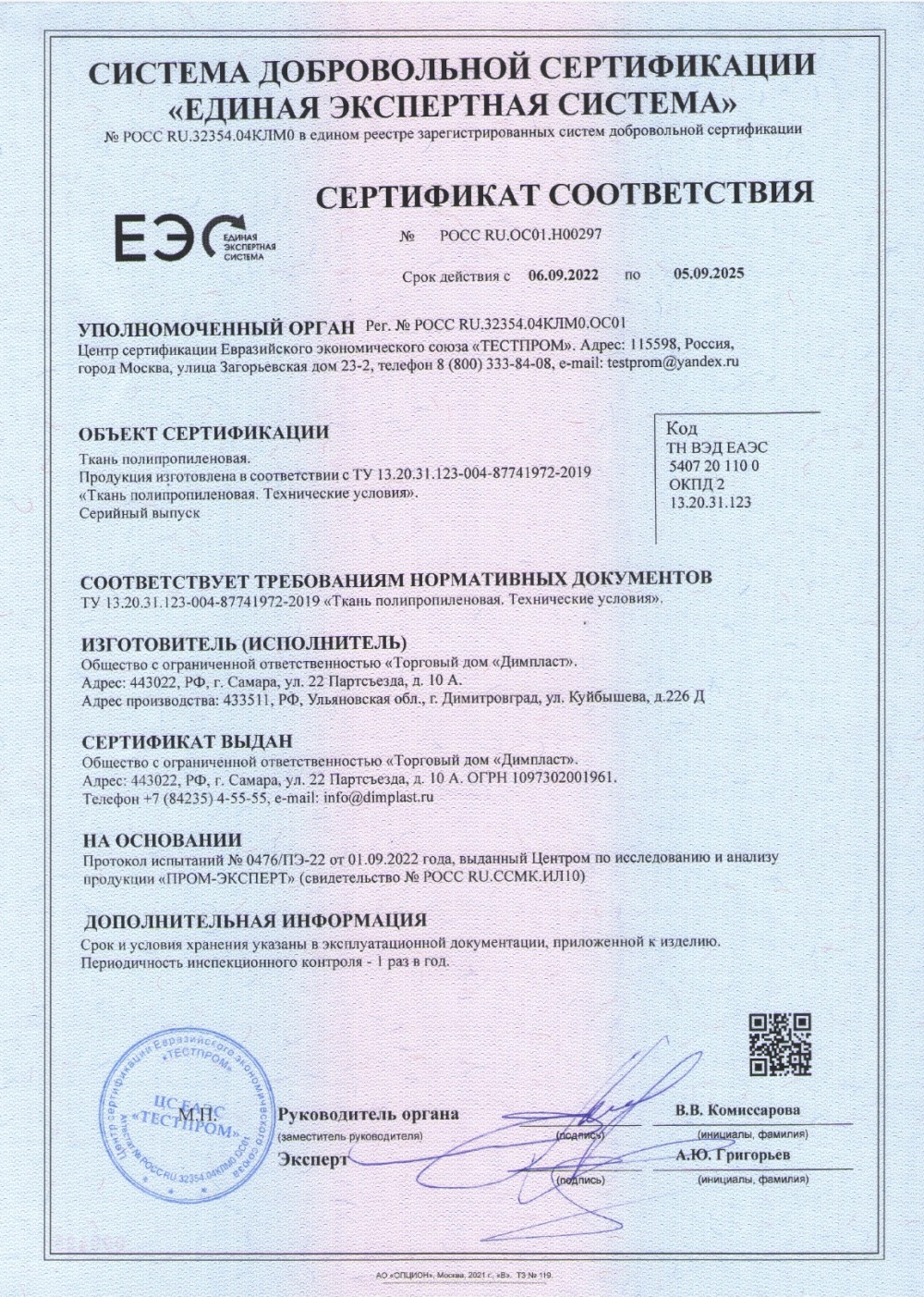 Был приобретен комплект оборудования: два лентоткацких станка от производителя Amtrac Industries Pvt Ltd. (Индия), линия для производства мультифиламентной нити от Lohia Corp Limited (Индия), три 8-челночных круглоткацих станка от Cirwind Machine Mfg. Co. (Индия), линия автоматической резки для полипропиленовых мешков. Это позволило запустить в производство новый вид изделий – биг-бэги из полипропиленовой ткани.