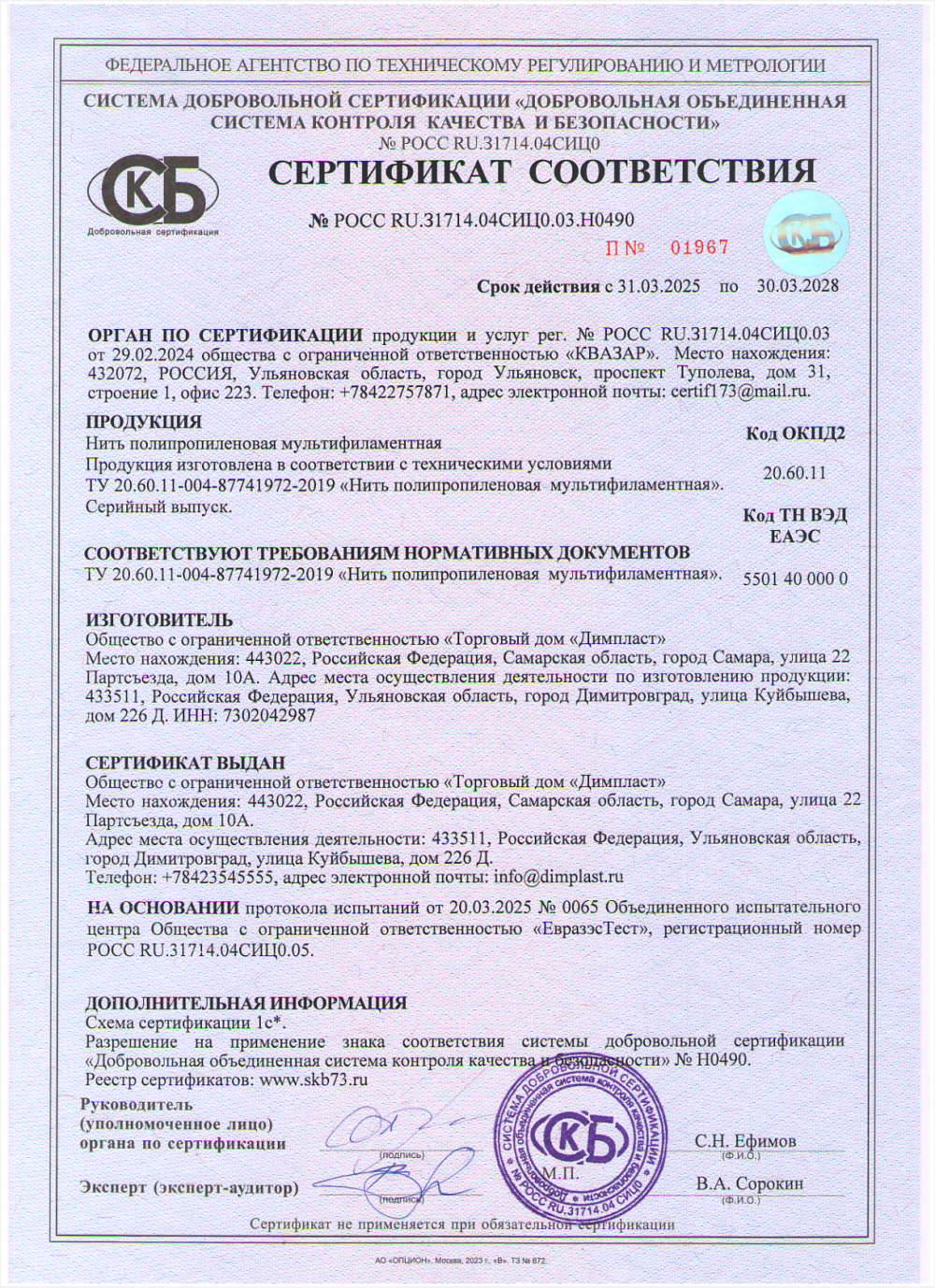 Были приобретены: линия по производству полипропиленовой нити от Kabra Extrusiontechnik (Индия), производительностью 1200 тонн в год и десять круглоткацких станков Starlinger & Co Gesellschaft m.b.H. (Австрия). Запущены поставки товаров бытового назначения и полипропиленовых, полиэтиленовых труб в Казахстан и Белоруссию.