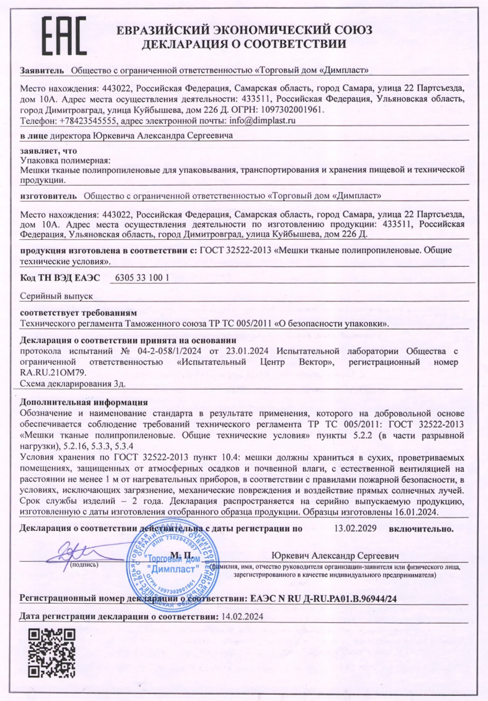 Был приобретен комплект оборудования: два лентоткацких станка от производителя Amtrac Industries Pvt Ltd. (Индия), линия для производства мультифиламентной нити от Lohia Corp Limited (Индия), три 8-челночных круглоткацих станка от Cirwind Machine Mfg. Co. (Индия), линия автоматической резки для полипропиленовых мешков. Это позволило запустить в производство новый вид изделий – биг-бэги из полипропиленовой ткани.
